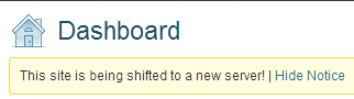 Carefully edit “This site is being shifted to a new server!” with your custom text that you want to display to your users. What this does is that, it will display a yellow bar with the text “This site is being shifted to a new server!” with a “Hide Notice” link that will enable the users to hide the message once and for all.